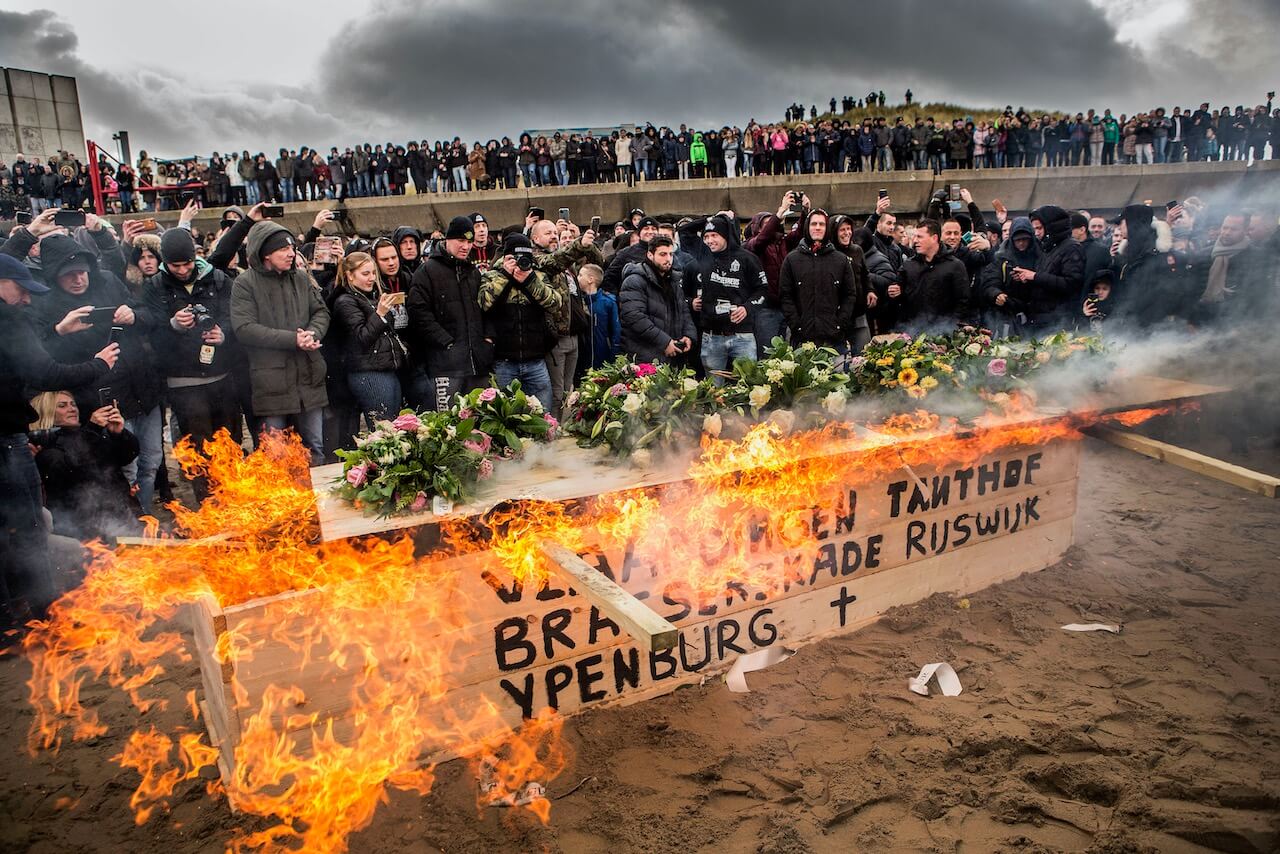DEN HAAG – Inwoners van Duindorp en Scheveningen nemen met een crematie symbolisch afscheid van het vreugdevuur. Het traditionele vreugdevuur is dit jaar verboden door de gemeenteraad van Den Haag.