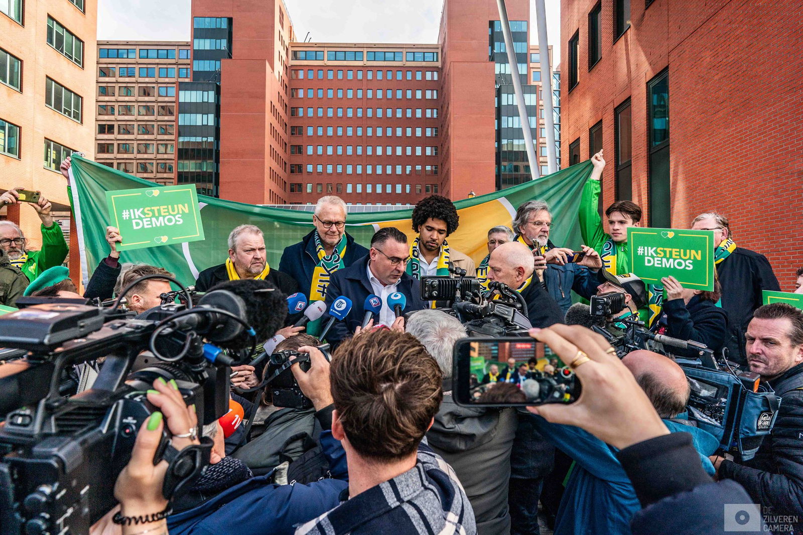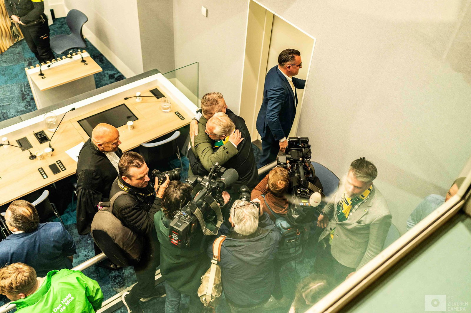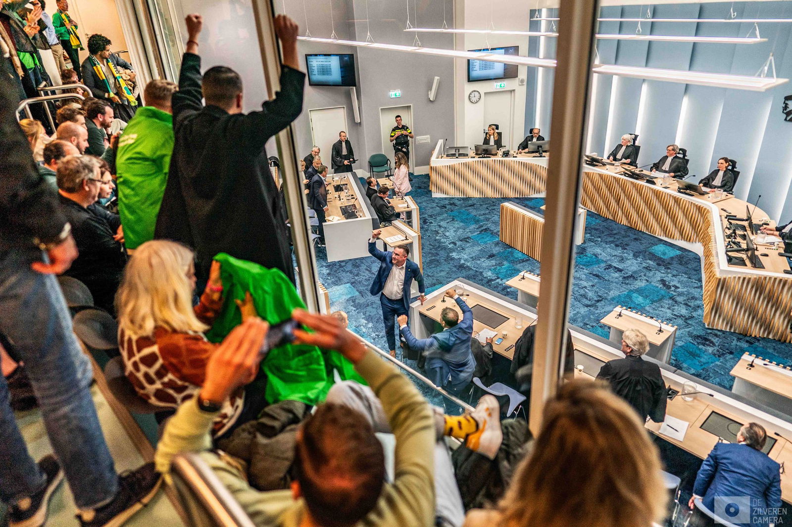 De rechtbank in Rotterdam heeft de Haagse oud-wethouder Richard de Mos vrijgesproken van alle aan hem en zeven medeverdachten tenlastegelegde feiten ten aanzien van vermeende ambtelijke corruptie, deelname aan een criminele organisatie, en het schenden van geheimhoudingsplicht. Dezelfde beslissing werd genomen in vrijwel alle zaken tegen zijn medeverdachten. Een verdachte is wel veroordeeld tot vier maanden voorwaardelijke gevangenisstraf voor wapenbezit. Het OM is teleurgesteld en overweegt in hoger beroep te gaan. De fotograaf volgt de procesdag, vanaf de bus vol met supporters tot de ontknoping in de rechtbank.
