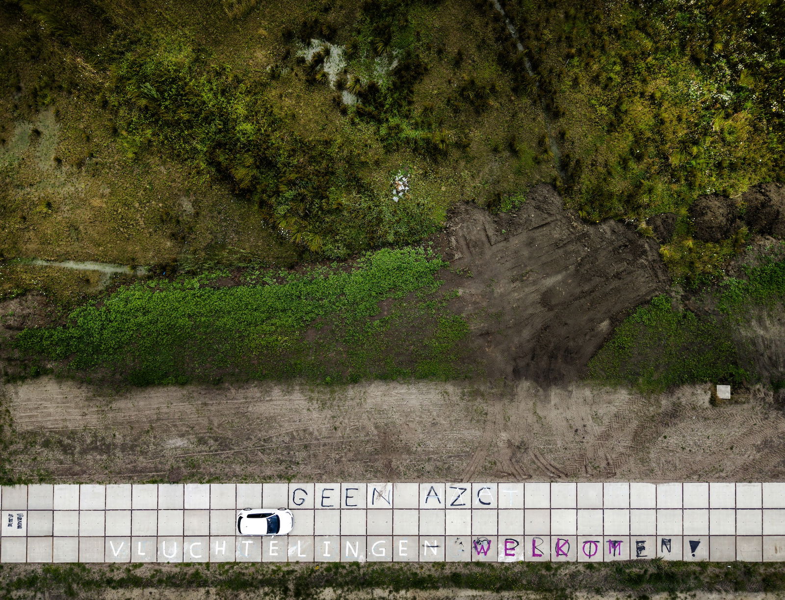 GEEN AZC | Protestleuzen op het wegdek bij de beoogde locatie voor een nieuw asielzoekerscentrum van het COA in de wijk De Tippe in Zwolle.