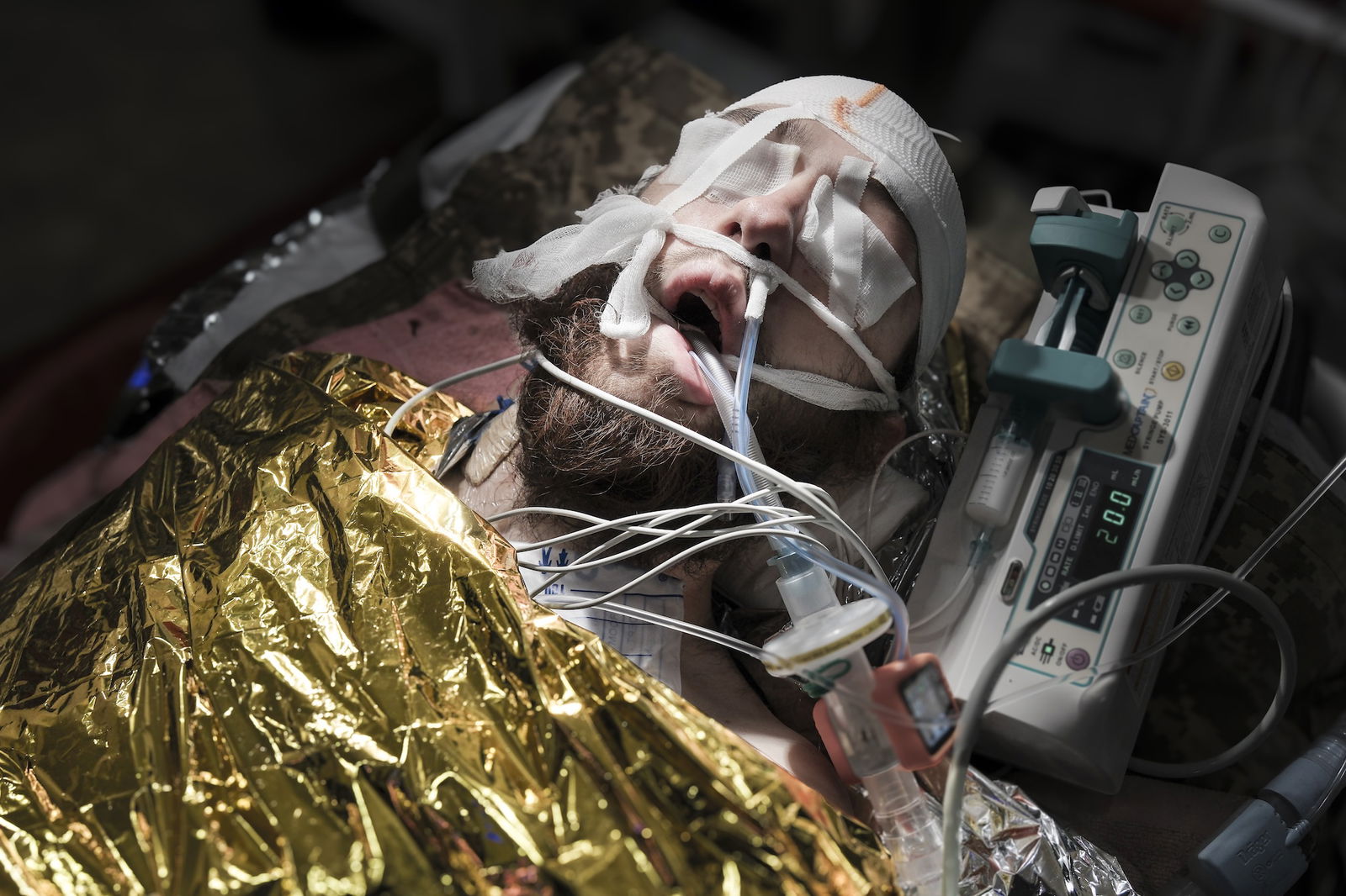 HET GEVECHT GAAT DOOR | Een ernstig gewonde jonge soldaat met granaatscherven in zijn hersenen krijgt kunstmatige beademing en wordt zo goed mogelijk behandeld.